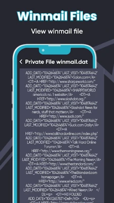 1. Seamlessly navigate through your device's storage and locate DAT files in an instant. No more frustration over inaccessible or unidentified files. Upon clicking the DAT and Winmail tab of DAT Viewer / DAT file manager, a list of files will appear on the screen. The user can view, edit, favorite, share, delete, and convert it into pdf. Finally, by using winmail.DAT opener free / data file viewer one can search for any particular DAT and Winmail using the search bar at the top.